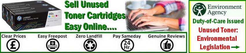 * List your unused toner with our simple form: If your unused cartridges are not showing, use our easy form for convenience to list your toner cartridges, plus other print consumables for offer. Alternatively "Contact Us " (shown in both header and footer) by emaiil. Collection to clear with our own vehicle, or a return of your surplus toner cartridges via courier or Post Office, is then arranged- Simple. List your toner using our easy form (SEE TAB TOP LEFT OF PAGE): A spreadsheet can be added, as can images.