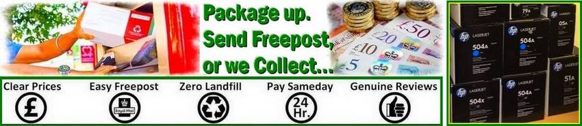 * Sell your unused toner cartridges easy online - Cash paid in 24 hrs. Clear surplus unused tonr cartridge stock with quick payment or donate (We support the E.A Air Ambulance). Subjet to quantity and location, our dedicated vehicle provides a free collection service of unused toner. Sameday cheque payment with PO invoice or bank transfer in 24 hrs.